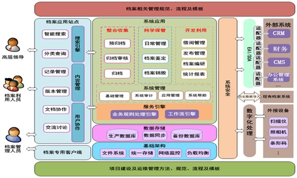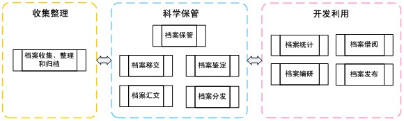 系统包含现行文件管理、档案管理、档案利用、保管、编研、统计、数据接口等模块 。